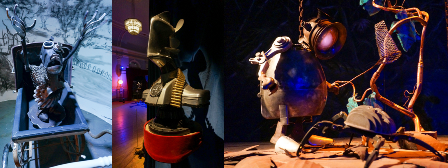 Joe Rush, known for his mechanical sculptures, takes over the ballroom and adjacent rooms. Repurposing discarded tools and devices, Rush weaves new stories from the metal to evoke a sense of history and placement. We both love Rush’s sculptures crafted from repurposed drills, carburettors and other detritus. Very Tim Burton-esque mixed in with cyberpunk and a healthy dose of Mad Max.